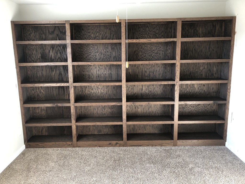 Custom Built In Stained Oak Bookshelf for Office